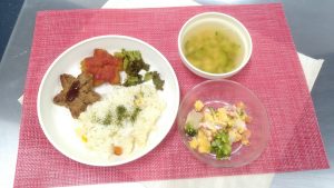 ホーム栄養管理課ブログイベント食12/24 クリスマス・イブ 栄養管理課ブログBLOG 12/24 クリスマス・イブ 2025.12.30 ・トルコライス ・ブロッコリーサラダ ・コンソメスープ ワンプレートに、ピラフ、星のコロッケ、星のハンバーグを盛りつけクリスマスを感じてもらえたと思います。 栄養士 二宮 前の記事 栄養管理課ブログ一覧 次の記事