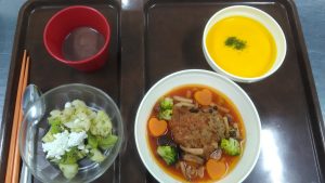 ホーム栄養管理課ブログイベント食2月14日 栄養管理課ブログBLOG 2月14日 2026.02.14 バレンタイン ・ハートの煮込みハンバーグ ・キウイとカリフラワーサラダ ・人参のポタージュ ・手作りチョコプリン バレンタインということで、ハート型のハンバーグを作ってみました。 栄養士 二宮 前の記事 栄養管理課ブログ一覧 次の記事